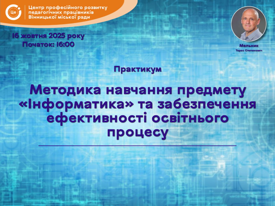 31 жовтня 2025 року  з метою обміну досвідом та поширення матеріалів конкурсних робіт учасників міжнародної виставки " Інноватика в сучасній освіті" від Вінницької МТГ було проведено вебконференцію "Освіта ХХІ століття: вектори інновацій, досвід та перспективи". Модератором конференції була консультантка КУ «ЦПРПП ВМР», к.п.н. Алла Олегівна Лановенко.