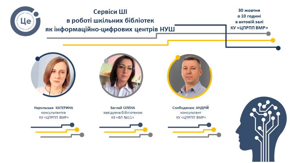 В рамках проведення XVІ Міжнародної виставки «Сучасні заклади освіти 2025», комунальною установою «Центр професійного розвитку педагогічних працівників ВМР» проведено вебконференцію «Застосування онлайн-сервісів, програм та можливостей штучного інтелекту в освітньому процесі: виклики та перспективи» з метою презентації матеріалів конкурсних робіт учасників виставки.