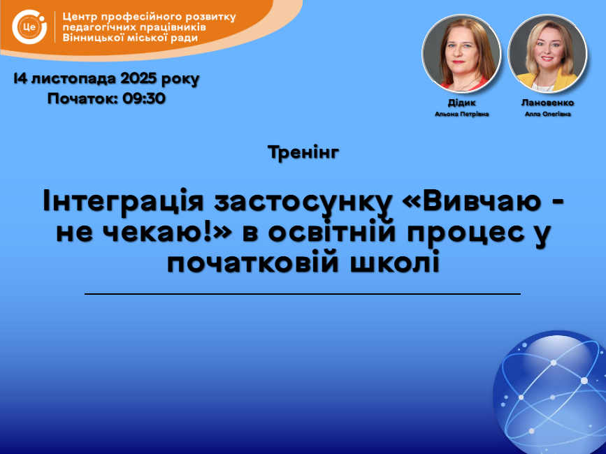 Під час дводенного навчання,  тренерка Тягун Ірина Геннадіївна, вчителька початкової школи КЗ «Вінницький ліцей №29», опрацювала з учасниками тренінгу педагогічні засади використання комп’ютерних ігор у навчанні, нормативно-правові та етичні засади використання цифрових освітніх ресурсів, відповідність змісту застосунку навчальним програмам і Державному стандарту початкової освіти, безпека в інтернет-середовищі для молодших школярів, санітарно-гігієнічні вимоги щодо використання ЦЗН,  контент-аналіз застосунку, типи завдань з української мови та математики у застосунку, використання застосунку під час різних форм навчання, практична робота із застосунком, вирішення проблемних ситуацій.